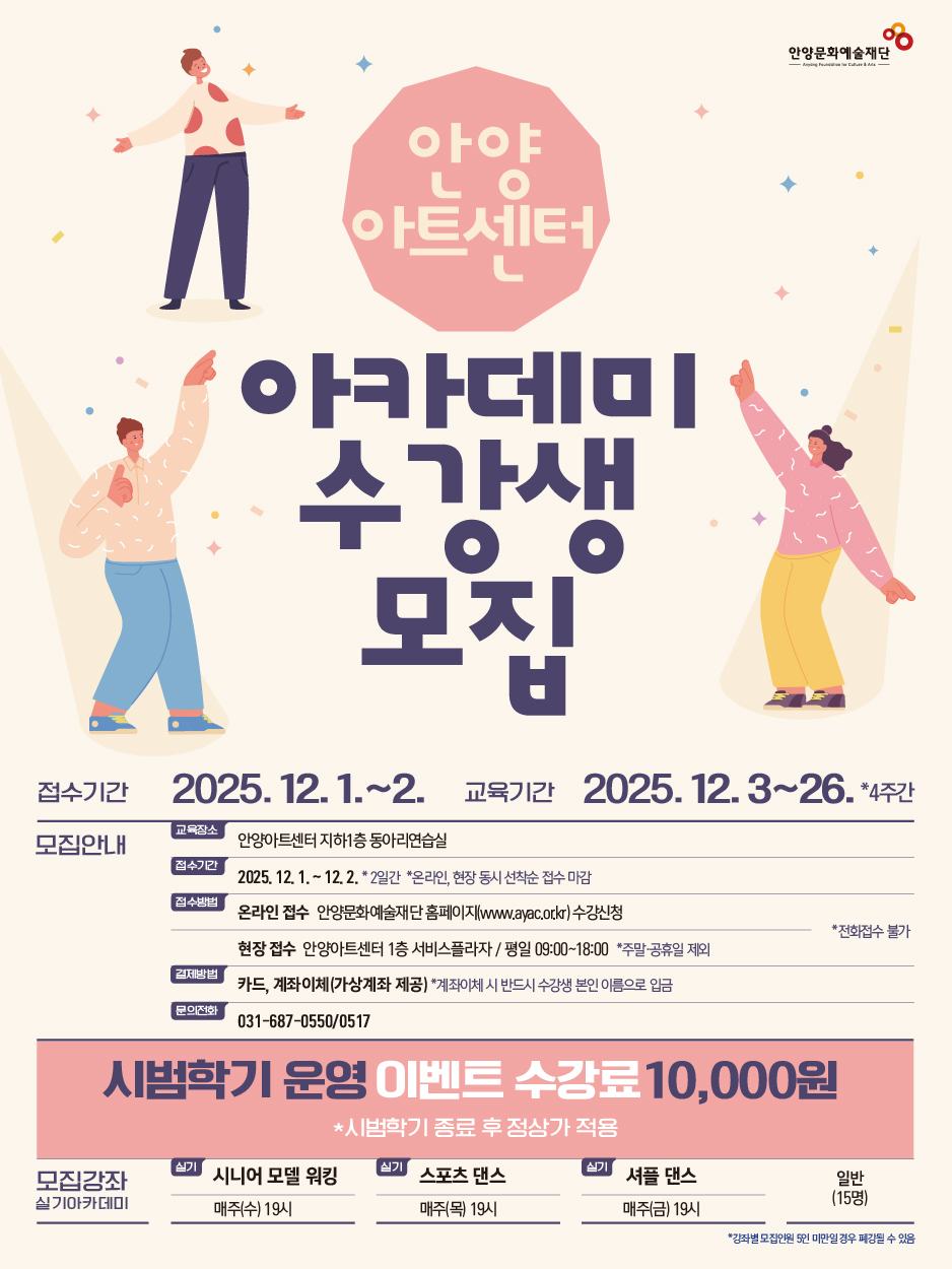 2025 안양아트센터 아카데미 시범운영 수강생 모집
