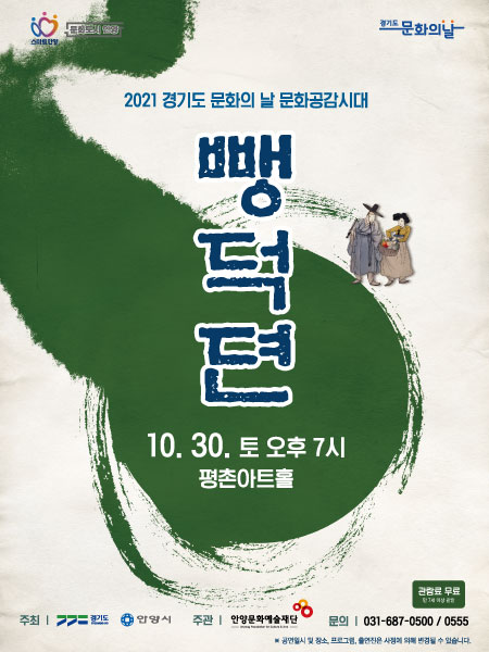 공지사항 ◈ ‘사회적 거리두기 4단계 격상으로 18시부터 익일 05시까지 최대 2인 동행가능’ 그에따라 1인 2매까지만 예매가 가능합니다. ( ※거주지가 동일한 동거가족임을 증명할 수 있는 경우는 최대 4매까지 예매가능, 동거가족임을 증명할 증빙자료 (주민등록등본)실물 필 지참, 미지참시 입장이 제한됩니다. 취소 및 환불, 좌석변경 불가.) * 본 공연은 코로나19 확산방지를 위해 ‘좌석 한 칸 띄어 앉기’를 운영하고 있습니다. * 전석 지정좌석제이며 지정된 좌석 이외의 다른 좌석으로는 이동이 불가합니다. * 본 공연은 전화예매만 가능하므로 공연예매 및 기타 문의사항은 (031-687-0555/0500)로 하시기 바랍니다. * 전화예매 만으로 진행되는 공연으로 예매선착순으로 좌석이 배정되며 조기 마감 될 수 있습니다. * 예매 선착순으로 좌석이 배정되기 때문에 공연당일에 좌석을 확인하실 수 있으며 좌석변경은 불가합니다. * 티켓은 당일 공연시간 1시간 전부터 예매 자 성함과 휴대폰 번호로 수령 가능하십니다. * 본 공연은 만7세 이상 관람가로, 공연당일 입장연령에 관한 환불은 불가합니다. ( ※ 입장연령 확인 - 등본 및 의료보험증, 학생증 등 필 지참 ) * 만7세 미만의 경우 티켓 소지 및 보호자 동반 여부와 상관없이 입장이 불가합니다. * 연령확인에 필요한 등본, 의료보험증, 학생증 등 생년월일을 확인할 수 있는 서류를 증빙해 주셔야하며 관람연령 미숙지로 인한 예매 티켓의 취소 및 환불, 변경은 불가하오니 유의하시기 바랍니다. * 티켓 취소 마감시간(공연 전일 오후5시)이후에는 취소, 환불, 변경이 불가합니다. * 공연 당일 좌석 변경 및 취소 불가 * 주차장이 협소하오니 가능한 대중교통을 이용하여 주시기 바랍니다.