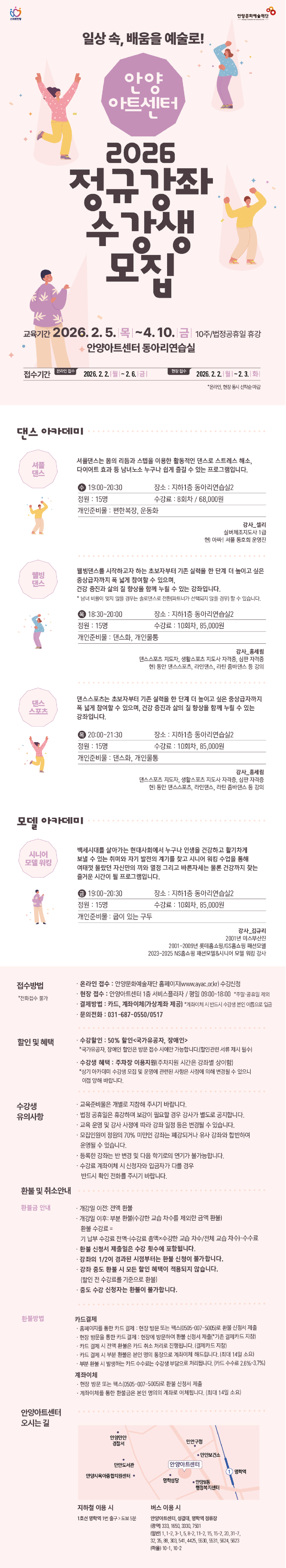 2026 안양아트센터 아카데미 정규강좌 수강생 모집