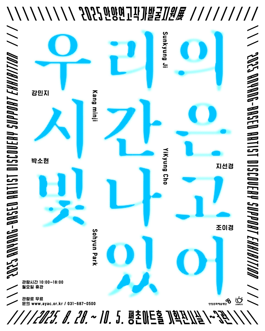 안양문화예술재단(이사장 최대호)은 안양에 연고를 둔 역량 있는 미술인을 발굴·지원하고 창작 기반을 확장하기 위해 2025 안양연고작가 발굴지원展 《우리의 시간은 빛나고 있어》를 8월 28일(목)부터 10월 5일(일)까지 평촌아트홀 전시실에서 개최한다.