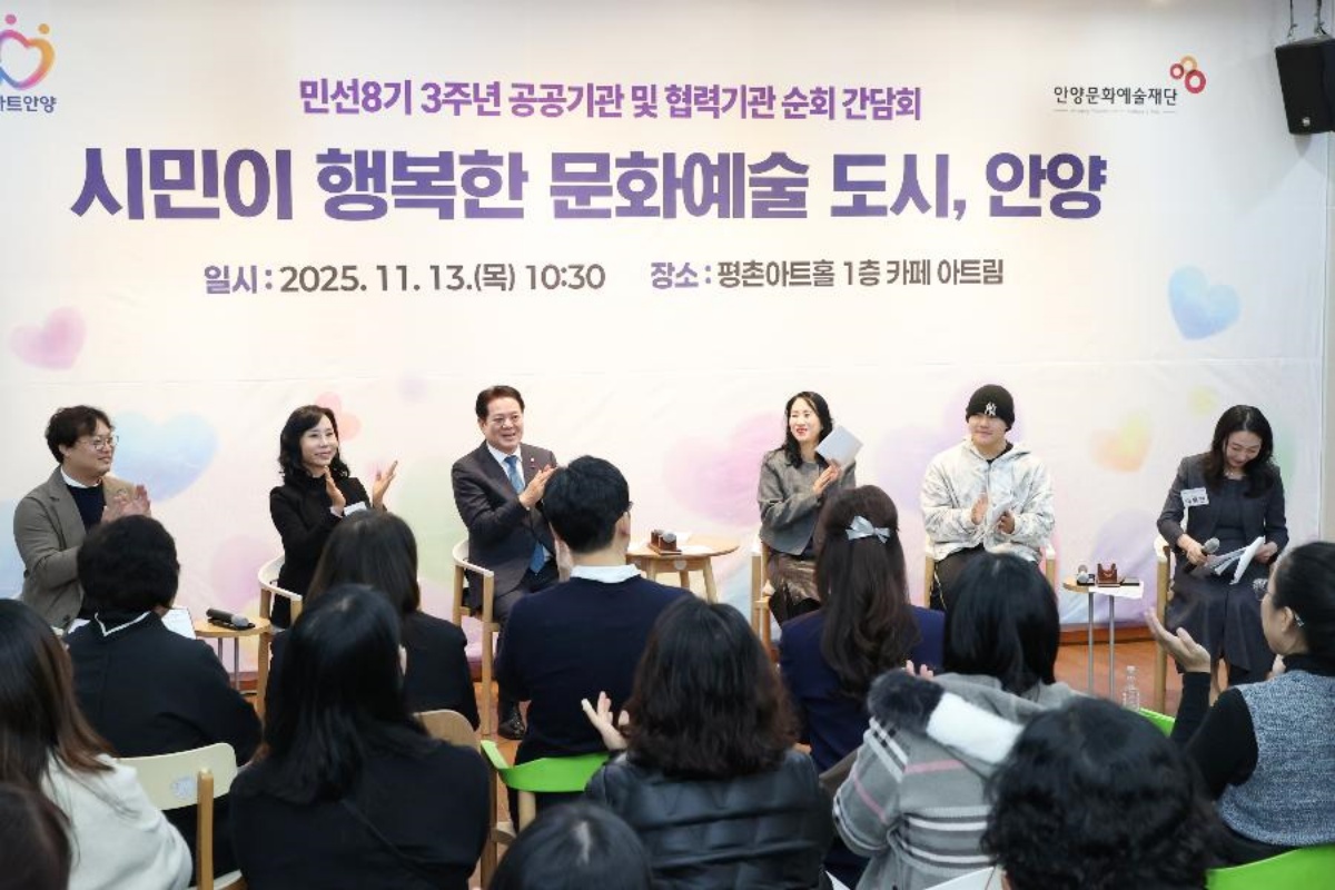 이번 간담회는 민선 8기 3주년을 맞아 안양시 문화예술 정책의 주요 성과를 공유하고, 현장 예술인과 시민의 의견을 직접 청취하기 위해 마련됐다. 행사에는 안양 지역 예술인과 문화단체 관계자, 시민 등 60여 명이 참석해 안양의 문화예술 비전과 발전 방향에 대해 활발한 소통의 시간을 가졌다.